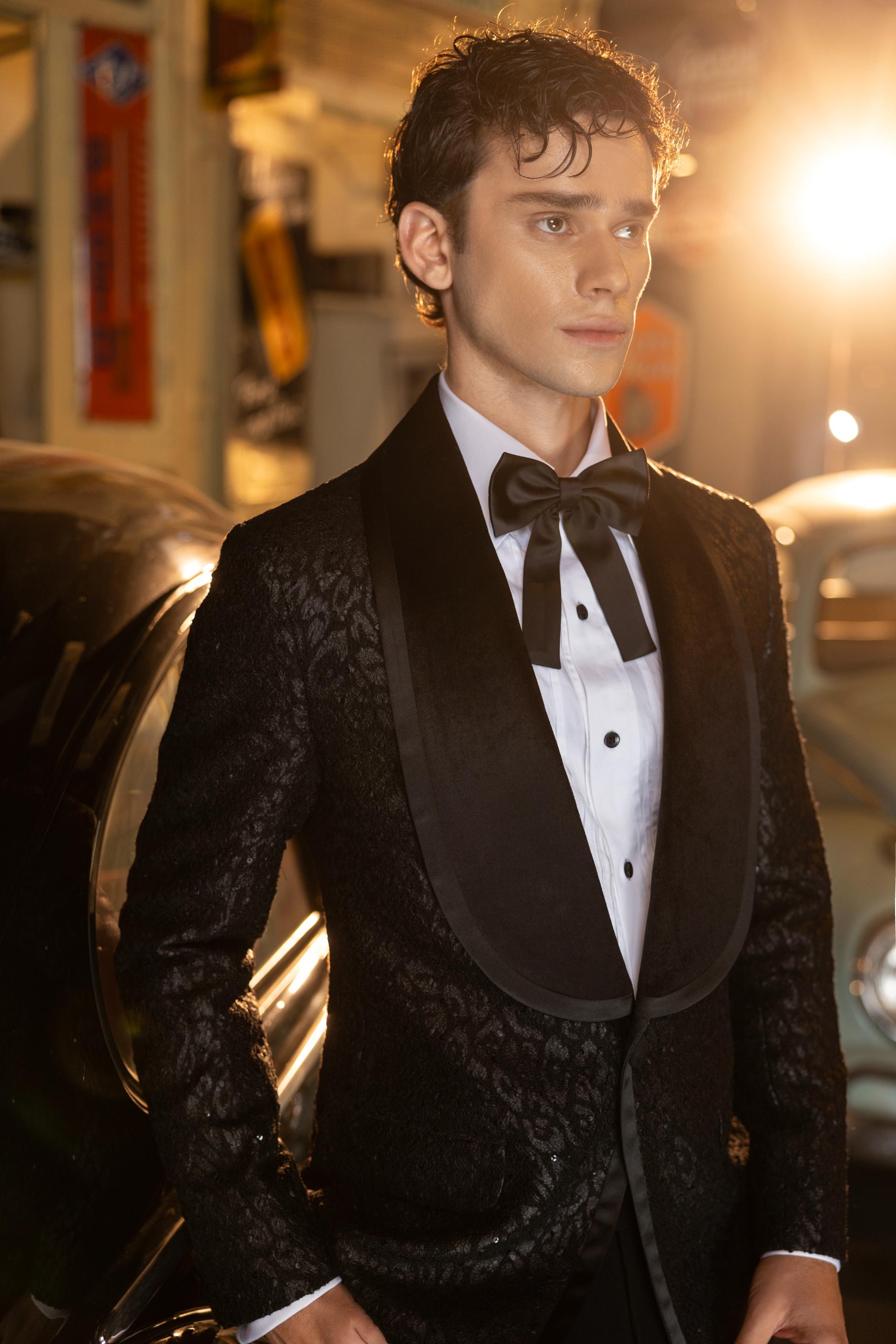 Introducing the ensemble—where classic sophistication meets modern allure. This impeccably bespoke black tuxedo, featuring a velvet shawl lapel with satin piping, exudes refined luxury. Paired with sleek straight-fit trousers and a crisp white pin-tucks shirt with French cuffs, it creates a striking silhouette. Designed for the modern gentleman, this article redefines cocktail elegance with effortless charm and commanding presence.