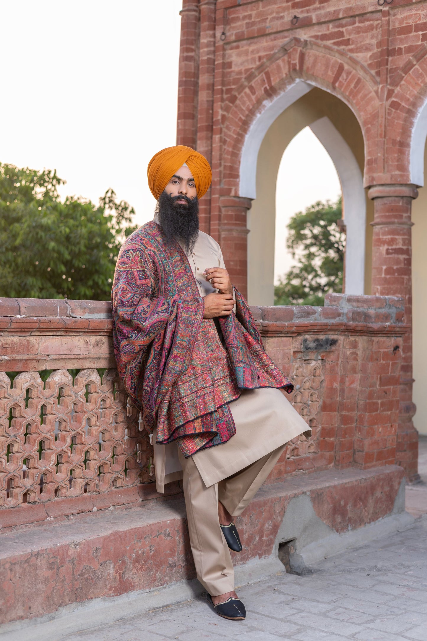 Fabric: Soft cotton-silk blend kurta pajama; richly woven wool/Pashmina shawl.